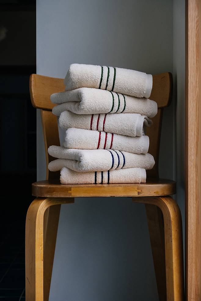 더 그란은 자연을 연상시키는 여러 색과 다양한 패턴의 수건을 묶어 판매한다. 나는 이 점이 좋았다. 다른 색, 다른 패턴이지만 모여있어도 부자연스럽지 않고 절묘하게 조화를 이루어서 어딘가 장식과 같은 느낌을 주기 때문. 다양한 조합이 있기 때문에 취향을 따라 고를 수도, 선물하기도 좋겠다. 사이즈는 45x85cm로 일반적인 사이즈이고 중량이 200g에서 250g 정도로 오늘 소개하는 수건 중 가장 높은 밀도의 수건이다. 그만큼 흡수력도 좋겠지. 구매는 여기(https://bit.ly/4bkdmjy)에서.