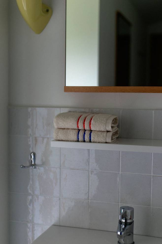 오늘 소개할 제품은 TWB의 시그니처 제품인 스트라이프 페이스 모델이다. 스트라이프 페이스의 색상은 염색을 따로 하지 않은, 목화 본연의 색상이다. 흔히 우리가 에크루라고 부르는 이 색은 무엇인가 더하지 않아 자연스럽고 편안하다. 화장실의 어떤 타일이라도 자연스럽게 어울릴 거다. 거기에 스트라이프 무늬가 레드, 카키, 블루 등 다양한 색상으로 있어 깔끔하고도 단정한 화장실 분위기를 연출할 수도 있다. 사이즈는 40x82cm이고 40수 코마사로 짜였다. 중량은 200g으로 우리가 호텔 수건이라고 부르는 그 품질을 만족한다. 구매는 여기(https://bit.ly/48Uit8D)에서.