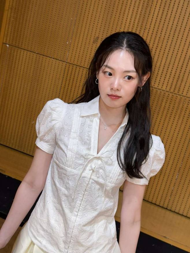 악세서리는 최대한 절제해 미니멀리즘을 살렸다. 실버 이어링과 얇은 목걸이, 손가락에 낀 얇은 실버 반지는 전체적인 스타일을 해치지 않으면서도 은은한 포인트 역할을 한다. 블라우스와 스커트 모두 밝은 컬러로, 피부 톤을 한층 돋보이게 하며 상큼한 인상을 남긴다.