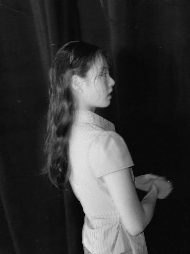 헤어스타일은 긴 생머리를 자연스럽게 연출했다. 가르마를 자연스럽게 타고, 얼굴 옆으로 흘러내리는 긴 앞머리가 부드러운 이미지를 강조한다. 끝부분에 살짝 들어간 물결 웨이브는 손질에 힘을 빼고 자연스러움을 살렸으며, 전체적으로 머릿결이 건강해 보인다. 컬러는 자연스러운 흑갈색으로 특별한 염색 없이 본연의 느낌을 살렸다.