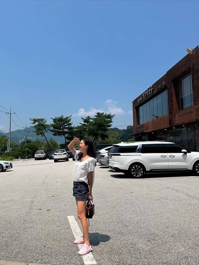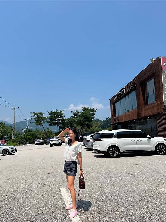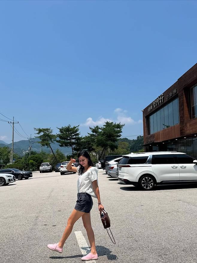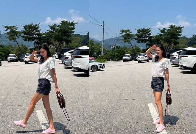 공개된 사진 속 고소영은 한여름의 맑은 하늘 아래 흰색 블라우스와 블랙 쇼츠, 그리고 연분홍색 운동화로 캐주얼하면서도 사랑스러운 분위기를 완성했다.