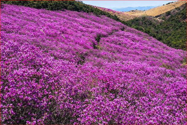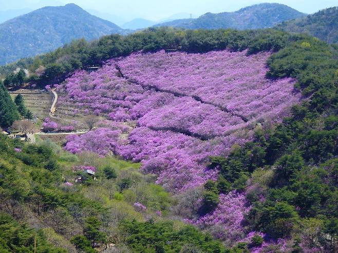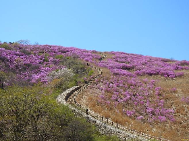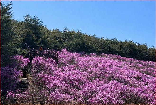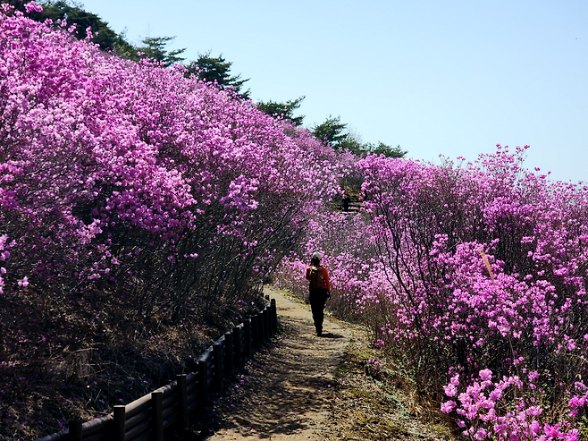 창녕군 창녕읍과 고암면에 걸쳐 있는 화왕산(757m)은 사계절 내내 탁 트인 조망을 자랑하는 영남의 명산입니다. 특히 봄철에는 허준 드라마 세트장 인근부터 정상부까지 이어지는 광활한 진달래 군락지가 장관을 이루는데요. 경사가 급한 자하곡 코스보다 초보자도 오르기 편한 '옥천 코스'를 통해 만날 수 있는 화왕산의 봄 풍경을 소개합니다.