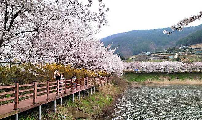 이곳은 조용한 시골 마을로 도심 속을 벗어나 한적한 분위기를 즐기기 좋은데요. 봄이 되면 벚꽃이 피어나기 시작하면서 봄 여행지로 인기를 끌고 있습니다. 송월마을에서는 승월저수지를 중심으로 형성된 데크길을 걷기 좋은데요. 벚나무가 나란히 서 있으며 벚꽃 터널을 지날 수도 있죠.
