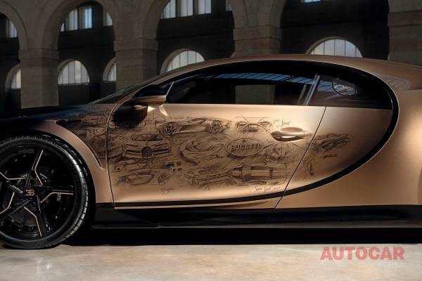 조수석 도어에는 1926년 출시 당시 세계에서 가장 럭셔리한 차로 평가받았던 타입 41 르와이얄(Type 41 Royale)과 이 프로젝트를 총괄한 부가티의 전 디자인 디렉터 아킴 안샤이트(Achim Anscheidt)가 개인적으로 가장 좋아했던 타입 57 SC 애틀랜틱을 포함한 26대의 차량이 그려져 있다.