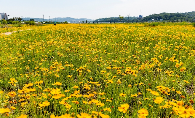 충북 충주시 동량면 동산로 137화물전용역 주변에 조성된 금계국 군락→ 5월 말~6월 초 가장 아름다움