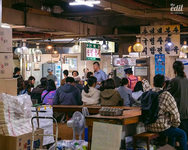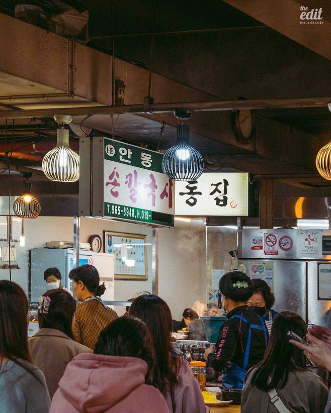 안동집은 경동시장 신관 지하 1층에 있다. 이름만 신관이지, 1982년에 준공된 오래된 건물이라 입구부터 세월의 흔적이 느껴진다. 그럼에도 1960년도부터 시작된 경동시장 안에서는 1982년에 태어난 건물이 ‘YB’로 통한다.