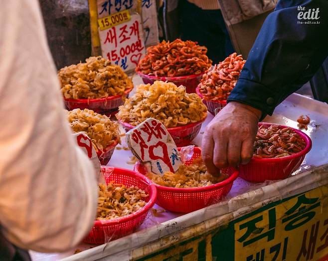 이왕 경동시장에 들른 김에 국수로 부른 배도 꺼트릴 겸 시장을 한 번 돌아보는 것도 추천한다. “고등어 반값!” “우리는 반의반 값!” 같은 진짜일지는 모를 홍보 멘트(?)를 경쟁하듯 부르기도 하고, 가득 쌓인 건어물 앞에서 맛보라고 손짓하는 상인도 있다. ‘말랑 복숭아 누르지 마세요. 초인종이 아닙니다.’ ‘복숭아도 뭅니다’ 같은 서울 모 마트에서 시작해 밈처럼 퍼진 안내문들과는 달리 “과일은 만져봐야 알죠.”라며 내미는 상인도 있었다. 반찬거리나 식재료를 파는 곳이 대부분이라 놀러 온 김에 살만한 물건은 많지 않지만, 걷다 보면 추억의 캔디를 파는 노점이나 인기 있는 튀김만둣집을 맞닥뜨릴 수도 있다.