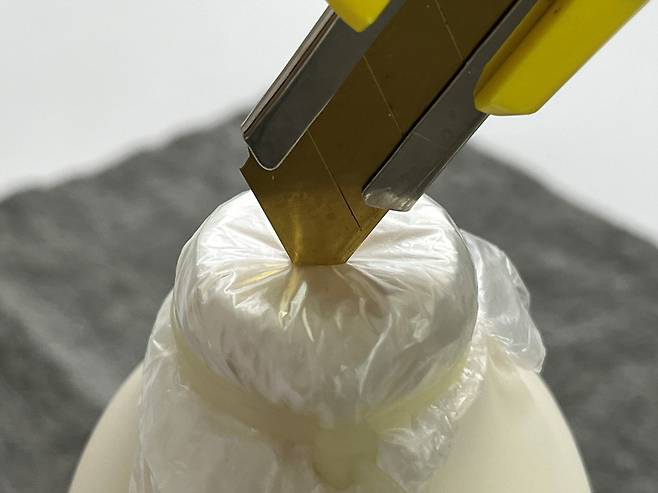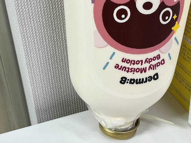 칼로 비닐에 작은 구멍을 뚫습니다. 로션이 적당히 나오도록 구멍을 뚫으세요.