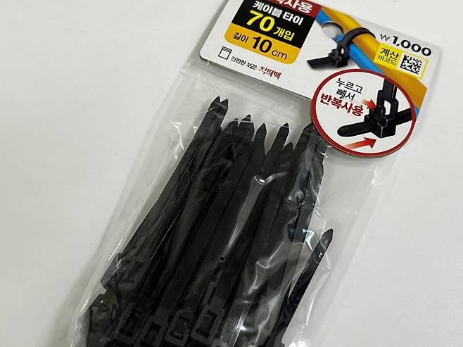 고정을 위해 고무줄 등을 대안으로 써도 되지만, 케이블 타이가 가장 확실하게 고정됩니다.