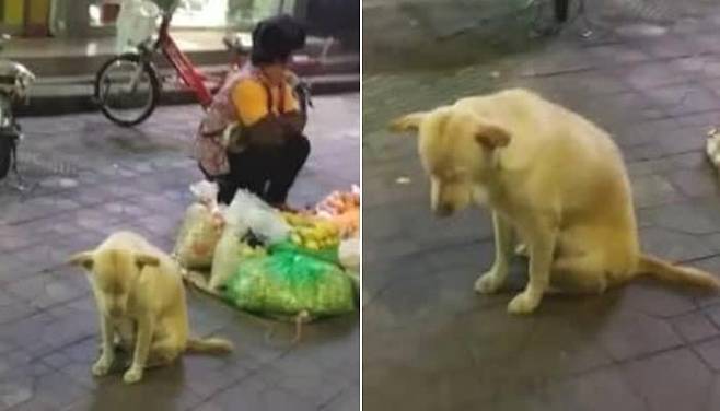 최근 중국의 소셜미디어 웨이보와 현지 매체들을 통해 큰 화제가 된 이 사진 속에는 길가에서 야채와 과일을 파는 주인 할머니 옆에 늠름하게 앉아 있는 강아지의 모습이 담겨 있습니다.