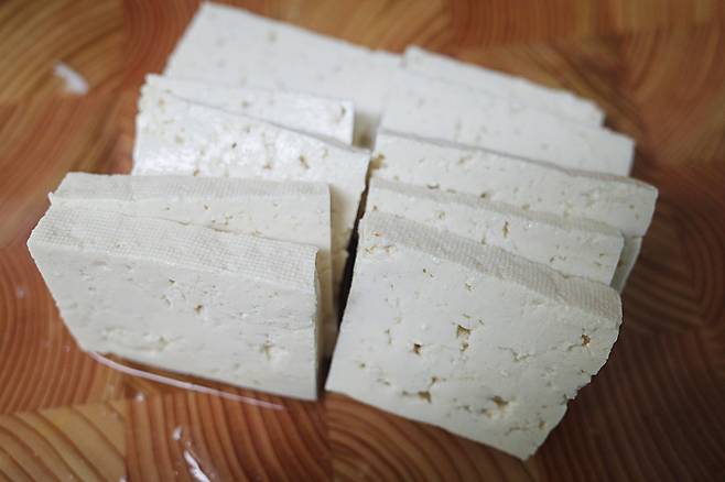 두부는 1/2모를 큼직하게 썰어 준비합니다.