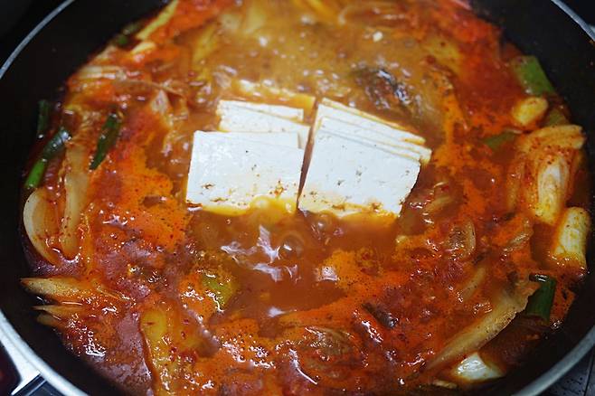 두부를 올려 한소끔 더 끓여 마무리해주세요