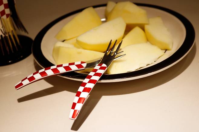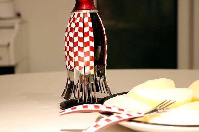 이렇게 잡아당겨서 빼고 다시 장착하면 과일포크를 사용할때는 기능적으로 보관을 할때는 장식용소품으로 역할이 바뀌게 됩니다.