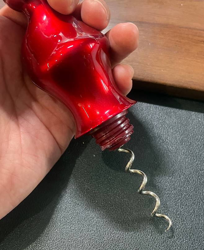 그리고 또 하나의 숨겨진 기능이라고 한다면 상단의 장식물이 와인오프너가 된다는점입니다.
