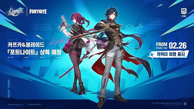 이번 협업을 통해 ‘붕괴: 스타레일’의 스텔라론 헌터 소속 캐릭터 ‘카프카’와 ‘블레이드’가 26일부터 ‘포트나이트’에 등장한다. 두 캐릭터는 아이템 상점에서 외형 콘텐츠 형태로 출시되며, 원작 설정을 반영한 디자인과 함께 LEGO 스타일도 지원된다.