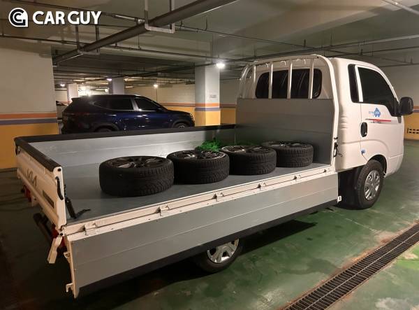 디젤 대비 초반에 토크가 낮다고 살짝 느껴지지만 속도계 바늘은 꾸준히 상승한다. 화물을 적재하면 어떻게 될까? 휠, 타이어, 가구 등 다양한 짐을 200~800kg 정도 적재하고 시승을 진행했다.