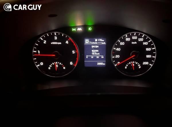 계기판에 표기된 RPM 게이지는 LPG 엔진임에도 특이하게도 레드존이 4000RPM 부근에서 시작한다. LPG 엔진으로 최대한 디젤의 특성과 비슷하게 하려다보니 토크를 최대한 저 RPM 구간에 몰아주려는 의도로 보인다. 실제로 풀악셀로 가속해도 4200RPM 부근에서 변속이 되는 것을 확인할 수 있다.