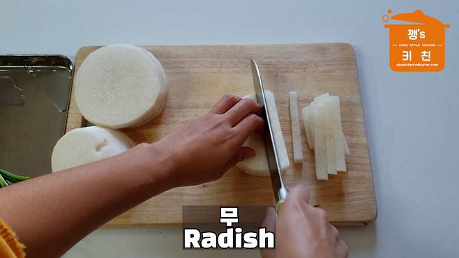 쪽파는 무 길이와 비슷하게 잘라주세요