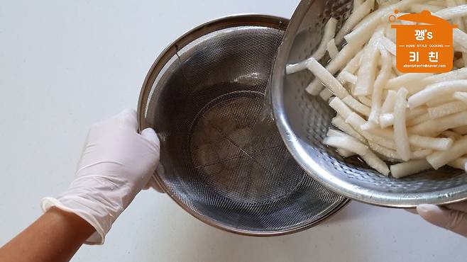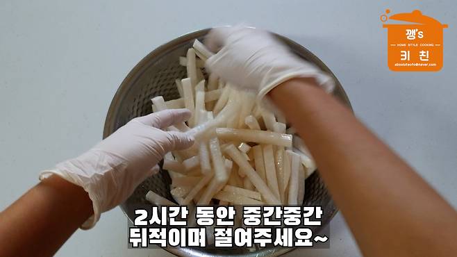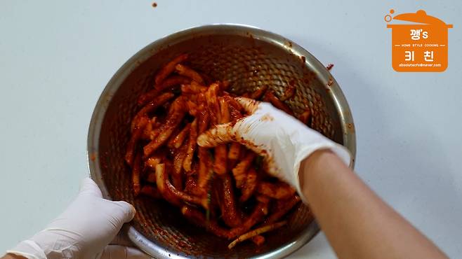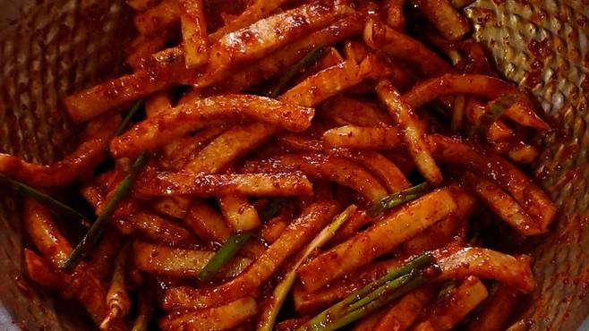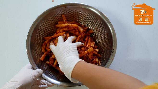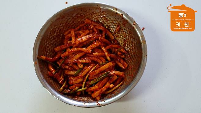 물기 짠 무에 고춧가루 3큰술을 넣어