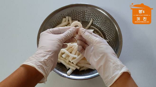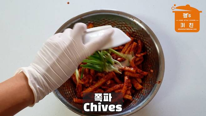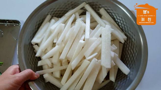 쪽파는 무 길이와 비슷하게 잘라주세요