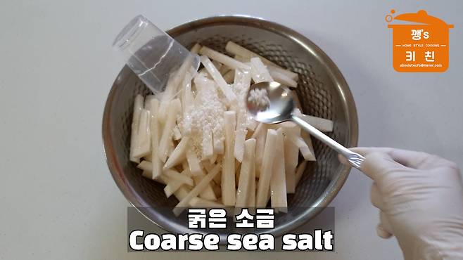 굵은소금 반 큰술을 넣어 잘 섞어주세요