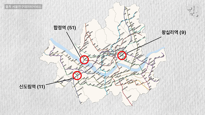 서울역만큼은 아니지만, 서울시내 지하철역 안에서도 비둘기가 자주 보인다. 2023년 지하철역에서 발생한 비둘기 관련 민원은 총 131건. 이 중 합정역이 51건으로 제일 많았고, 신도림역과(11건) 왕십리역이(9건) 뒤를 이었다.