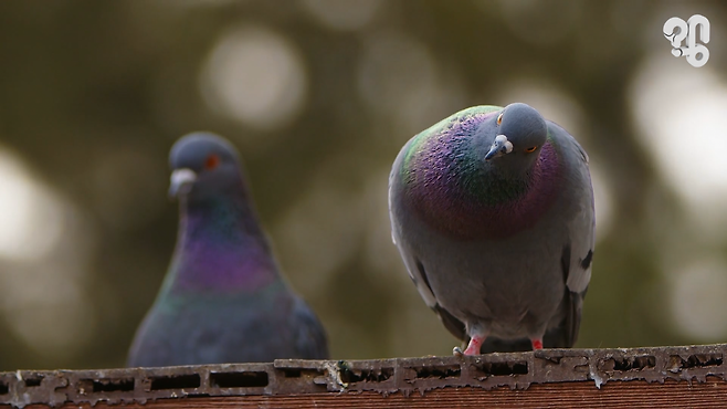 집비둘기는 전혀 다릅니다. 가금화가 되어 있기 때문에, 가축이 되어 있기 때문에 이때까지 사람이 먹이 주는 걸 먹고 살았기 때문에 선천적으로 집비둘기는 사람을 보고 겁내지 않습니다. (그래서) 건물 안에 들어오고, 발이 걸릴 정도로 가까이 오고 그러잖아요.