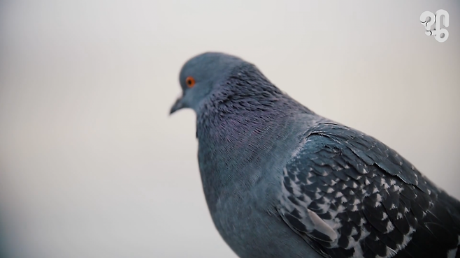 집비둘기는 전혀 다릅니다. 가금화가 되어 있기 때문에, 가축이 되어 있기 때문에 이때까지 사람이 먹이 주는 걸 먹고 살았기 때문에 선천적으로 집비둘기는 사람을 보고 겁내지 않습니다. (그래서) 건물 안에 들어오고, 발이 걸릴 정도로 가까이 오고 그러잖아요.