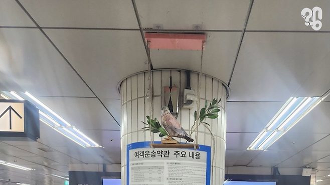 민폐 덩어리인 요 비둘기, 쫓아내려는 시도도 계속되고 있다. 신도림역은 비둘기의 천적인 황조롱이 모형을 설치하기도. 근데 사진이 움직이지 않는다는 걸 비둘기가 금방 눈치채서 별 효과가 없다.