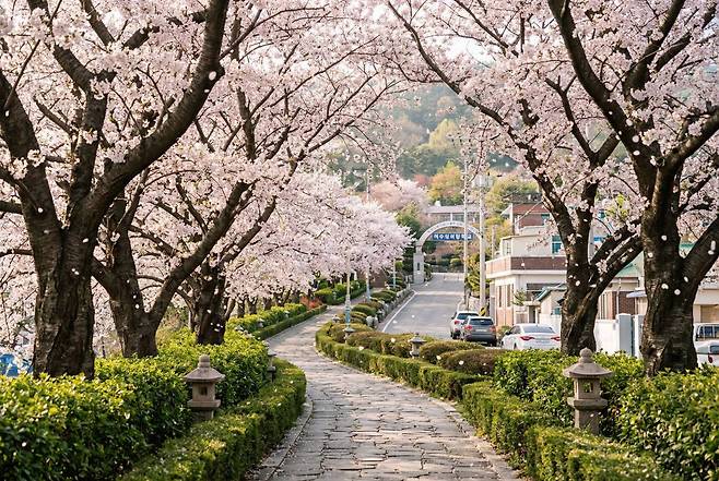 길 양옆으로 늘어선 거대한 벚나무들이 하늘이 보이지 않을 정도로 꽃 지붕을 만들어내는데, 꽃잎이 떨어지는 날 이곳을 걸으면 영화 속 한 장면 같은 벚꽃 비를 맞을 수 있습니다. 경사가 조금 있는 편이라 편한 신발은 필수지만, 그만큼 높은 곳에서 내려다보는 시내의 전경과 꽃의 조화가 일품입니다.