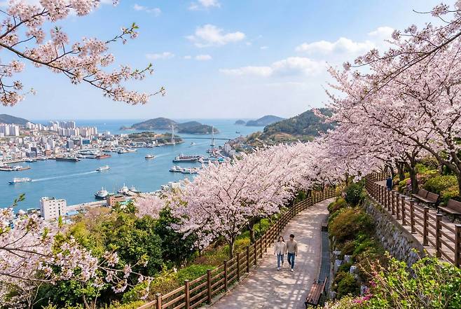 오래된 벚나무들이 만들어내는 터널은 마치 구름 위를 걷는 듯한 착각을 불러일으킵니다. 특히 자산공원에서 내려다보는 여수항과 오동도의 풍경에 벚꽃이 프레임처럼 걸리는 지점은 사진가들 사이에서 최고의 명당으로 꼽힙니다.