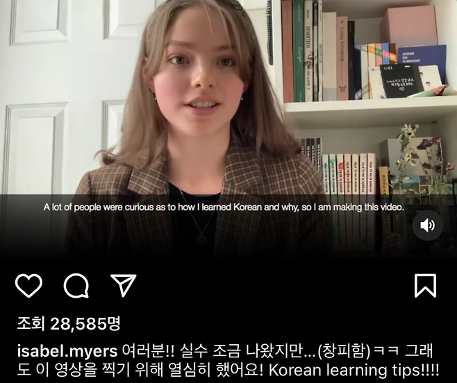 결국 한국에 대해 관심이 생겨 12살 때 한국어를 배우기를 결심했다는 이사벨. 유튜브 채널 '졸리'를 통해 한국어를 배우기 시작 했다네요.