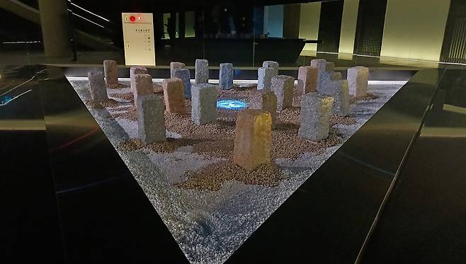 | ▲ 남도의병역사박물관 추모전시실. 이름도 남기지 않은 무명 의병을 기리는 공간이다. 작은 추모 조형물은 전남도내 각 지역의 돌로 만들었다. |
