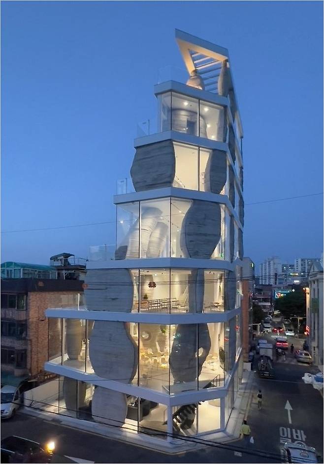 1. 로스톤 | 건물 자체가 작품인, 야경 감성 충만 4층 카페
