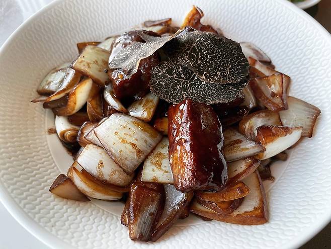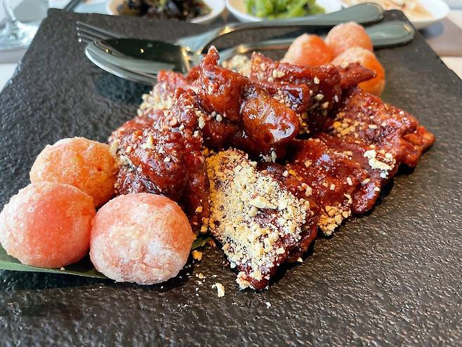 ▲메뉴: 북경식 오리 19,000원 한우채끝탕수육 97,000원, 크리스피 새우 창펀 28,000원