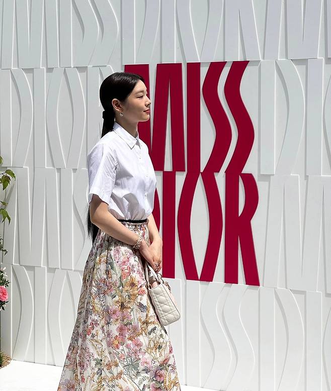 사진 속 김연아는 흰 카라 셔츠를 입고 플라워 롱 쉬폰 스커트를 입고 단아하면서 청순한 코디를 선보였다.
