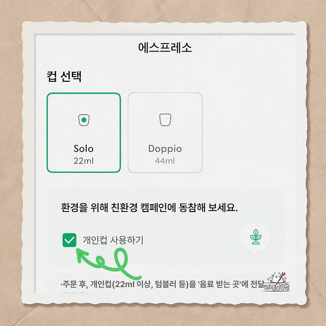 개인컵 사용하기를 꼭 체크하세요!
