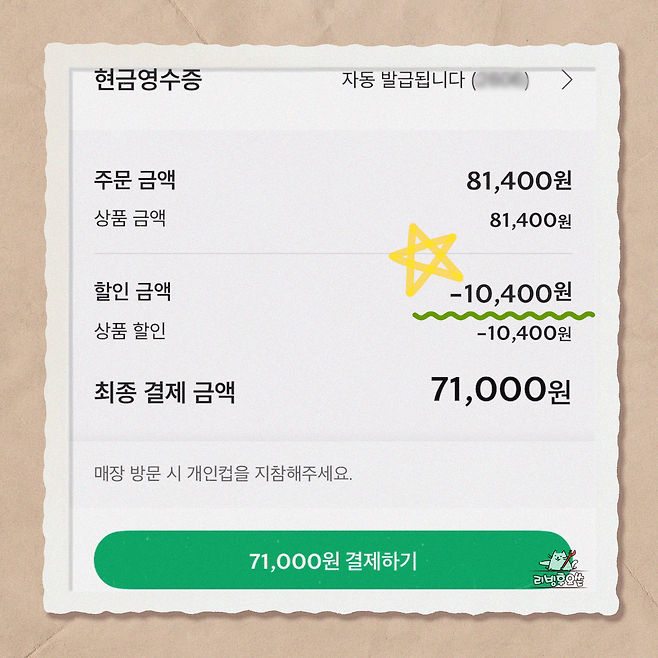 2. 만원 이하 영수증 : 별 7개 적립