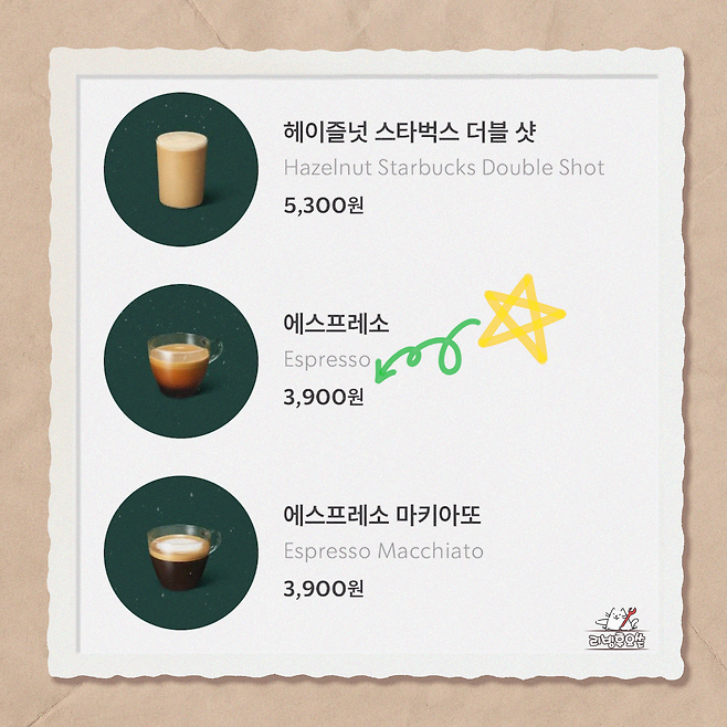 기본음료는 에스프레소로 받아오면