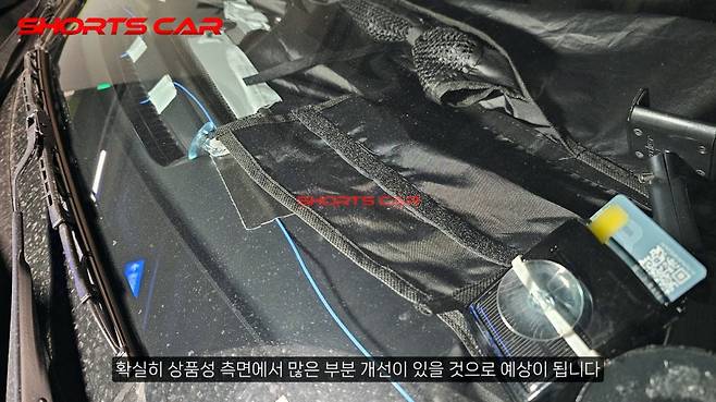 이외에도 헤드램프 디자인은 신형 스포티지와 마찬가지로 각진 형태의 헤드램프가 주목받고 있는데 특히 세로로 배치된 스타맵 시그니처 주간주행등(DRL)이 적용되어 있음을 알 수가 있는데 주간주행등(DRL)을 좀더 자세히 살펴보면 단순히 'ㄱ'자 형태가 아닌 기아의 중형 세단 'K5'에서 선보인 것과 비슷하게 눈꼬리가 뒤로 길게 뻗었을 것으로 유추할 수 있습니다.