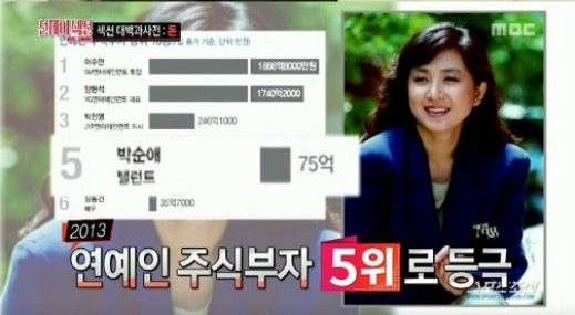20년 넘게 방송 출연 없이 조용히 살아오던 박순애는 2010년대 들어 ‘연예인 주식부자 5위’에 오르며 화제가 됐다.