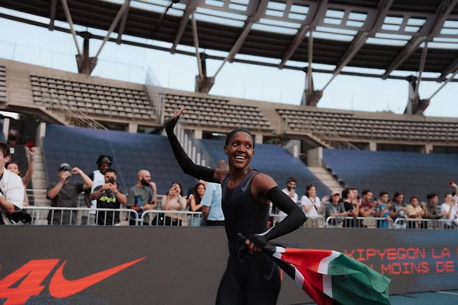 세상에서 가장 빠른 엄마의 도전은 그 자체로 빛났다. 케냐의 육상선수 페이스 키피에곤(Faith Kipyegon)이 지난 26일(파리 현지 시간) 파리 스타드 샤를레티(Stade Charléty)에서 1마일(약 1609m) 4분 주파에 나섰으나, 목표였던 4분의 벽은 깨지 못했다.