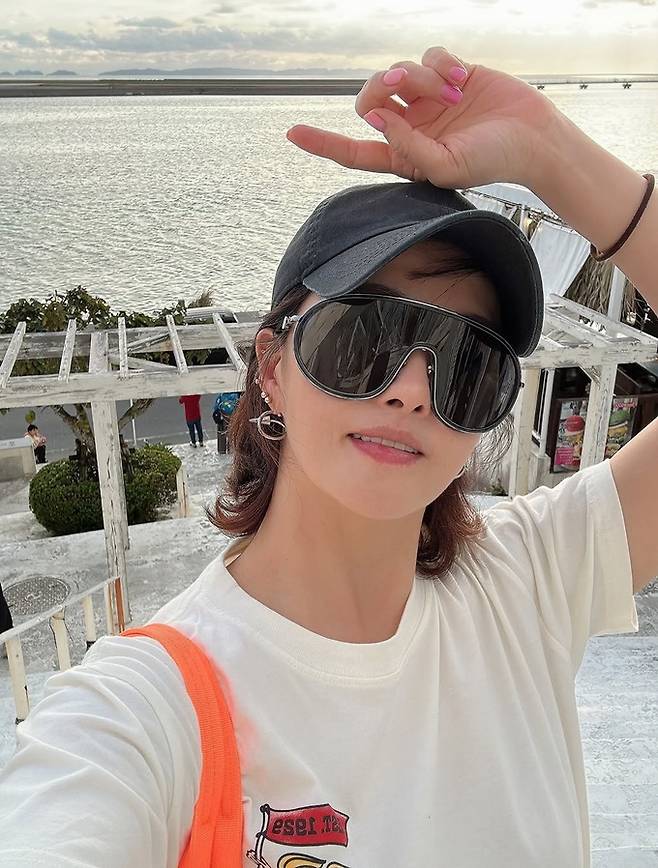 공개한 사진에서 김선아는 화이트 반팔 티셔츠에 조거팬츠를 입고 바람막이 재킷을 허리에 두른 애슬레저 스타일로 스포티하면서도 캐주얼한 여행룩을 완성했다.