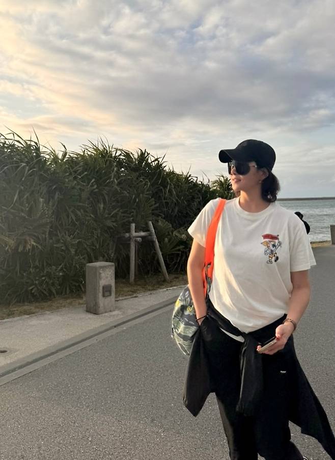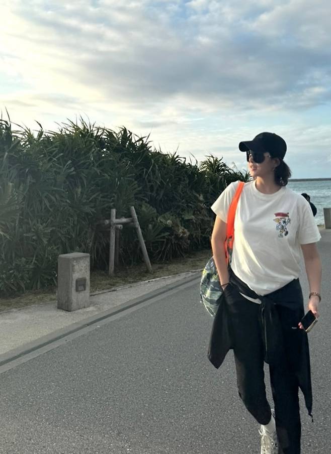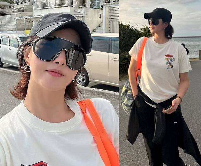 배우 김선아가 동네 마실 나온 듯 반팔 티셔츠의 애슬레저룩으로 일본 여행을 즐겼다.