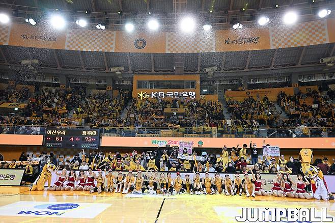 청주 KB스타즈는 25일 청주체육관에서 열린 우리은행 우리WON 2023~2024 여자프로농구 아산 우리은행과의 경기에서 73-61로 승리했다. 크리스마스이자 올 시즌 첫 번째 만원 관중인 2833명 앞에서 거둔 승리라서 더 의미가 컸다.