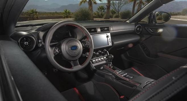 BRZ의 실내는 운전자를 위한 완벽한 공간이다. 수평으로 설계된 계기판, 낮춰진 대시보드, 그리고 8인치 STARLINK 인포테인먼트 시스템은 운전자의 몰입감을 극대화한다. 특히 Apple CarPlay와 Android Auto 대응으로 편의성도 높다.