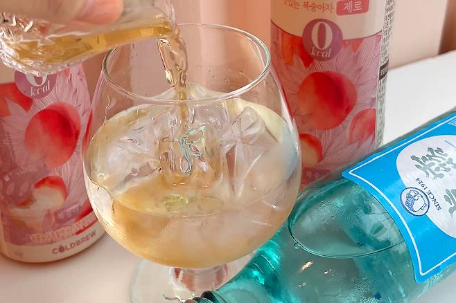 향긋한 복숭아 홍차가 소주 맛을 잡아줘서 거의 느껴지지 않았지만 그렇다고 너무 빨리 마시다 보면 훅 취해있을 것 같아 위험한 술 조합이에요.
