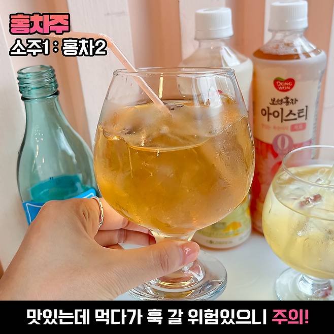 ‘차린건 쥐뿔도 없지만’에서 소개된 이영지님 홍차주! 홍차 아이스티와 소주의 조합으로 마셨는데 그렇게 맛있다고 SNS에서도 화제가 됐던 조합이죠.