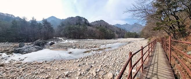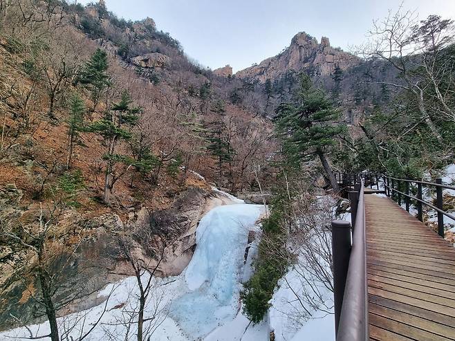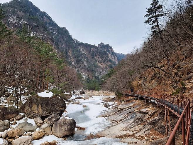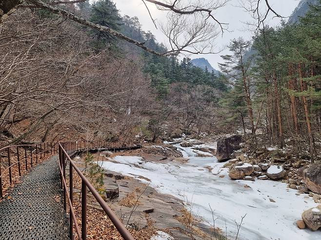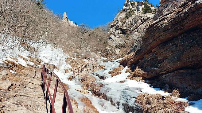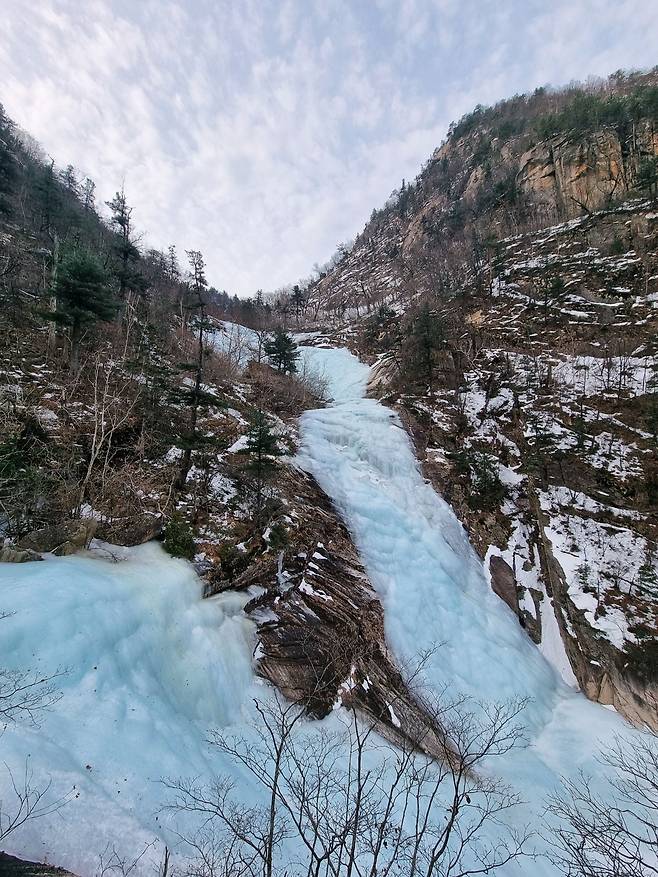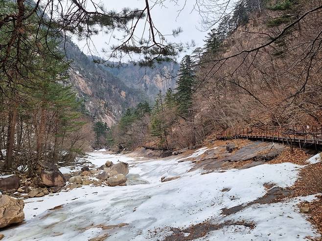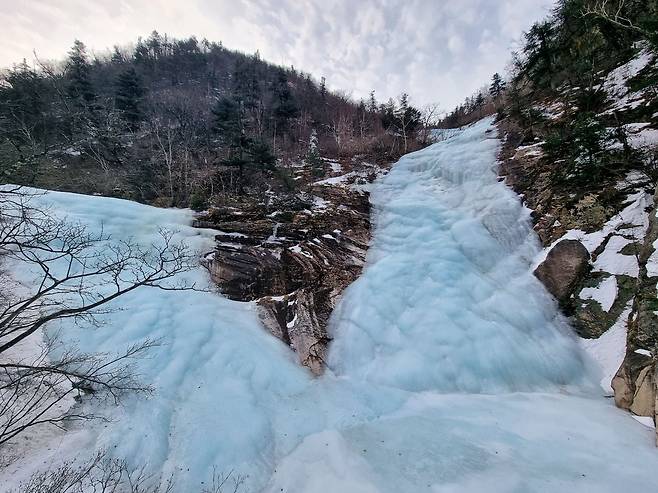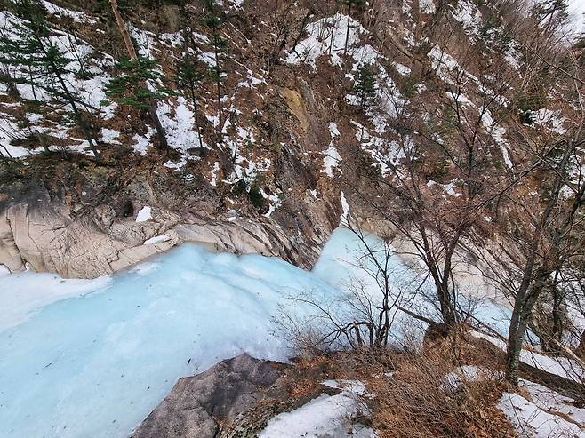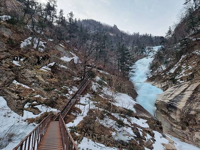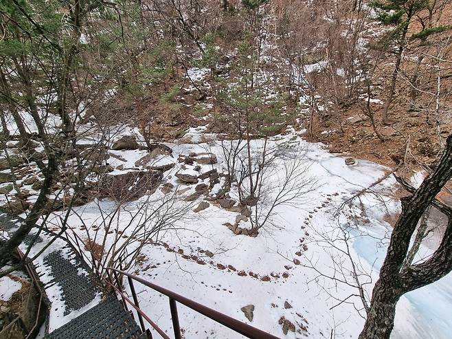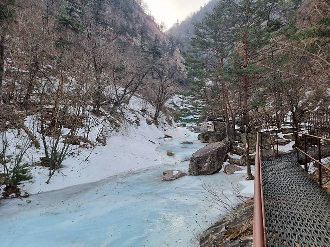 계곡은 아직 단단히 얼어있지만 그 밑으로 물이 흐르는 소리는 들리네요