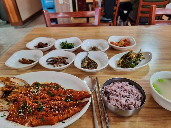 시외버스 티켓을 판매하는 매점주인분 말씀으로는 이미 몇 달전에 시간표가 조정되서 기존 13시 15시 버스가 30분씩 앞당겨 졌다고 합니다. 매표소 옆 식당에서 황태구이정식(1.5만)을 먹었습니다.